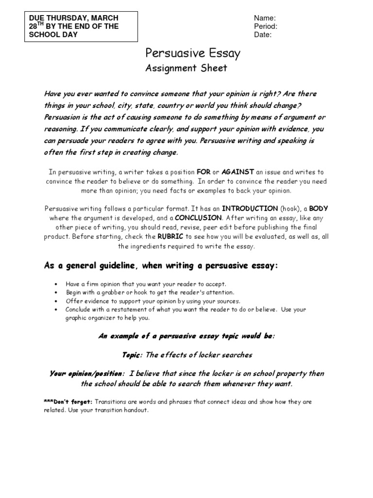 com Learning Center. You'll get weekly tips and tricks for improving your own writing and persuasive essay assignment achieving academic success through your writing. We are U. We hold graduate and professional degrees from major universities Princeton, Persuasive essay assignment, UCLA,Georgetown, Dartmouth, Penn, Northwestern.